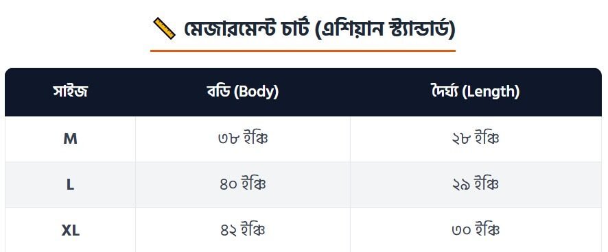 শার্টের সাইজ নির্বাচন করতে ক্লিক করুন (optional)M (optional)L (optional)XL (optional)